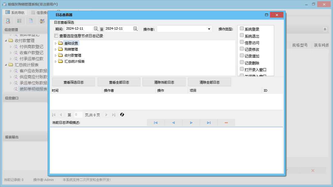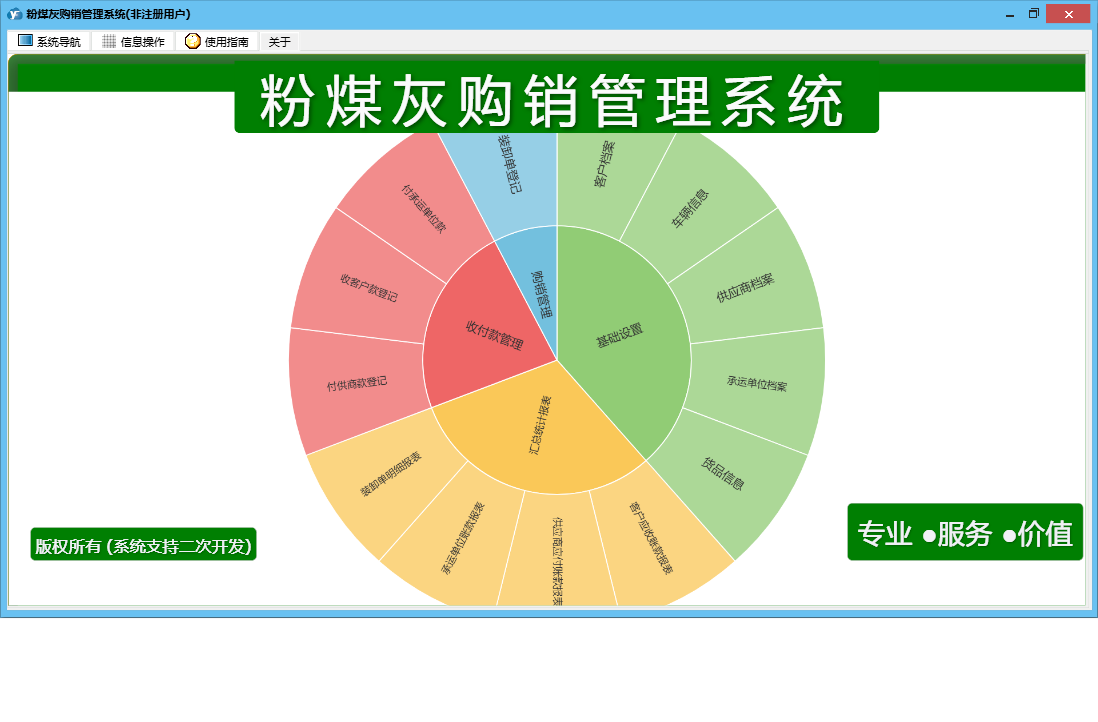 粉煤灰购销管理系统包含以下功能:客户档案、货品信息、装卸单登记、面板、收客户款登记、日志、付供商款登记、关于、权限设置、供应商档案、承运单位档案、付承运单位款、车辆信息等