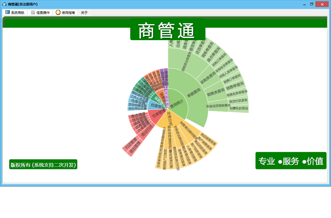 商管通包含以下功能:货品调库、销售管理、查询统计、采购付款、销售开单管理、货品档案设置、销售订单管理、档案管理、仓库设置、工作人员设置、业务分析、权限设置、期初库存设置、退库管理、供货付款、出库管理、来往单位设置、盘点清理、库存管理、销售收款管理、关于、销售收款、借出管理、采购订货、入库管理、归还管理、日志、采购管理、报价单管理、采购收货、现金流管理等