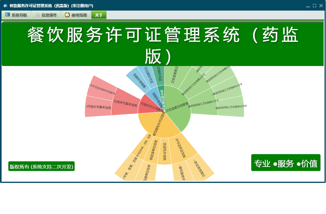 餐饮服务许可证管理系统(药监版)包含以下功能:被监督单位信息、1、行政许可基本信息、建设项目竣工卫生验收认可书、日志、关于、建设项目设计卫生审查认可书、许可证年审、注销、变更、权限设置、许可证新证发放、卫生监督意见书等