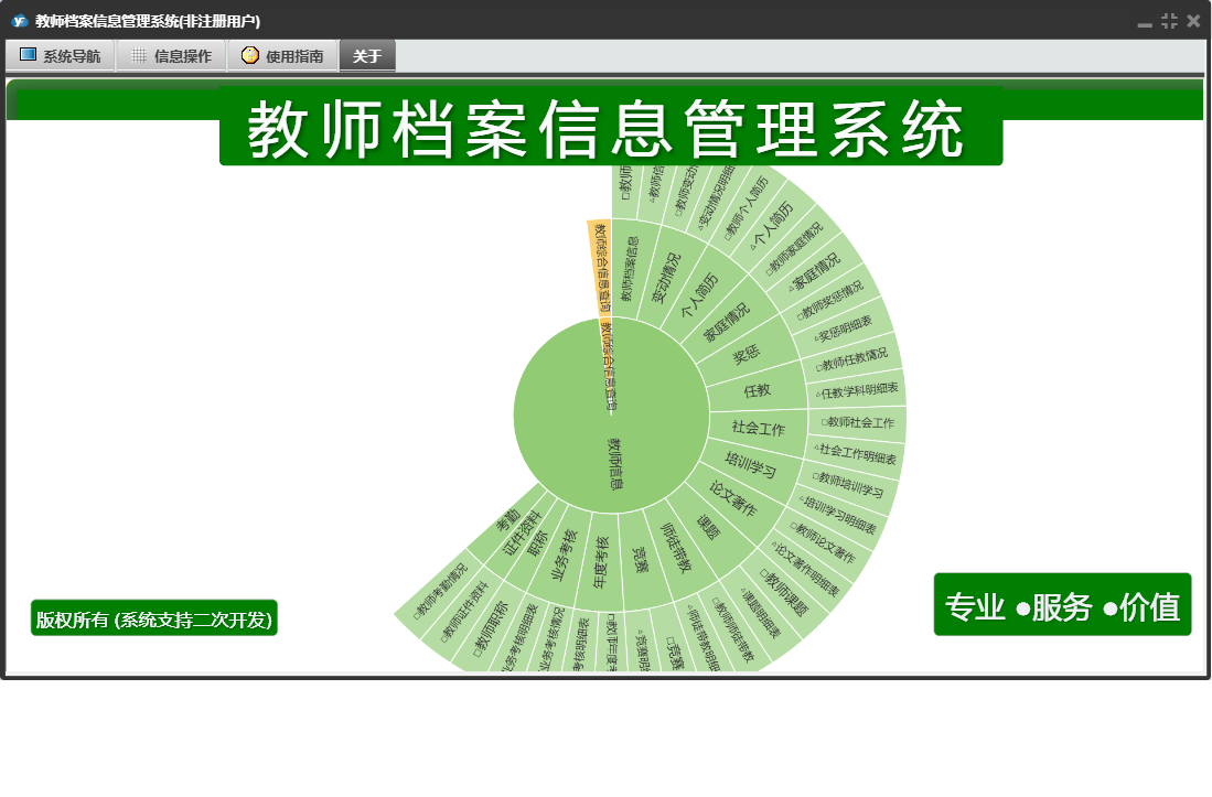 教师档案信息管理系统包含以下功能:业务考核、证件资料、竞赛、面板、任教、年度考核、课题、权限设置、个人简历、考勤、奖惩、社会工作、关于、培训学习、师徒带教、教师档案信息、日志、变动情况、论文著作、职称、家庭情况等