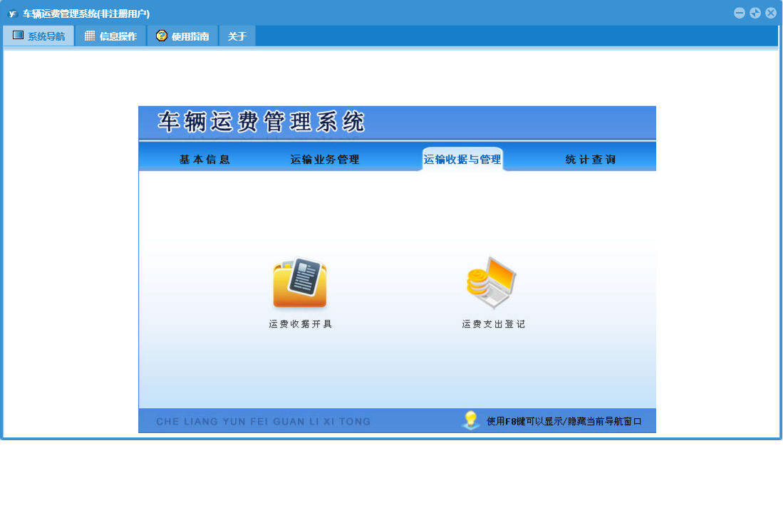 车辆运费管理系统包含以下功能:运费支出登记、客户信息录入、车辆运输业务登记管理、司机信息、运输合同、日志、运输业务登记、关于、基本信息、权限设置、统计查询、运费收据开具、项目出车登记、运费收据与管理、车辆档案等