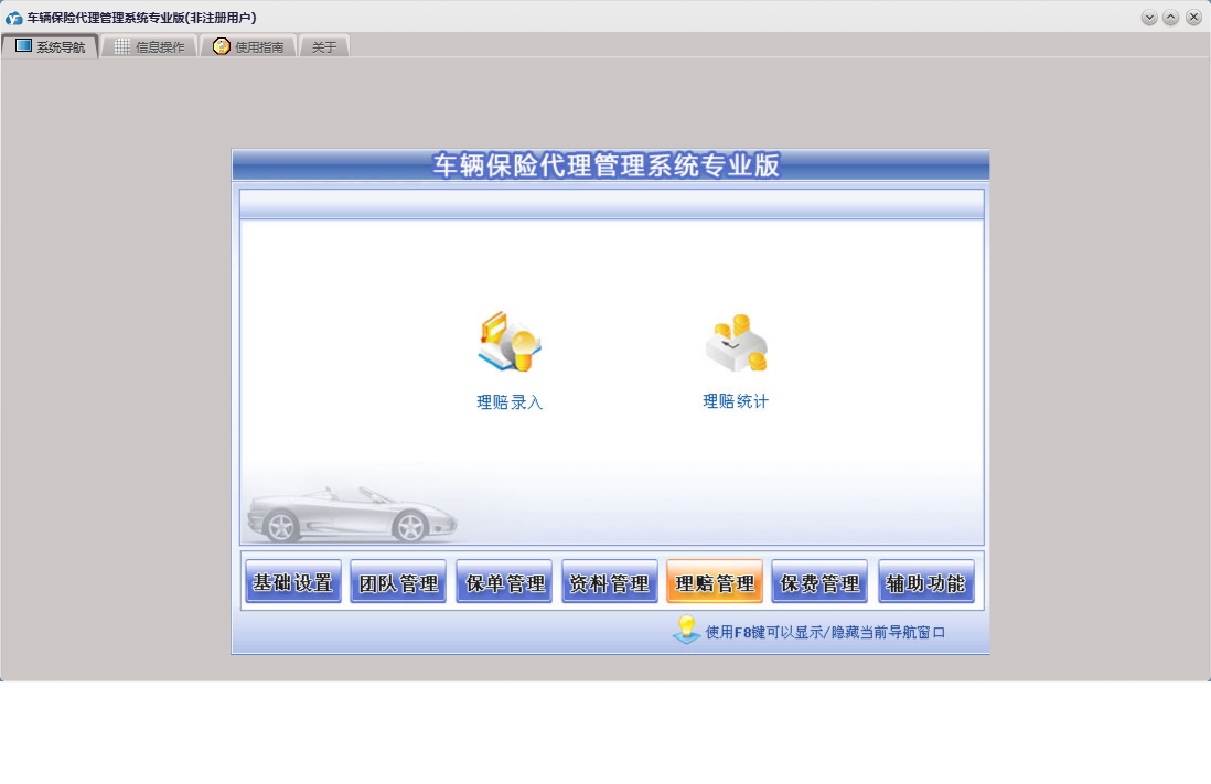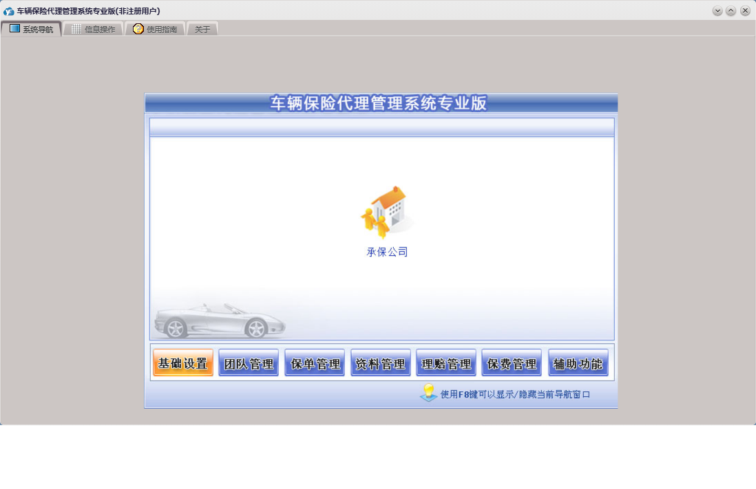 车辆保险代理管理系统专业版包含以下功能:车险交费、基础设置、团队设置、团队成员信息录入、理赔录入、资料管理、保单管理、保费管理、其他应用、事务录入、权限设置、关于、理赔管理、事务提醒、信息阅读、承保公司、日志、车辆保险、信息撰写等